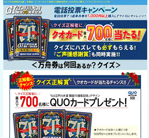 ●ご声援感謝賞:電投で3連単を3万円以上購入で「特製クオカード」もれなくプレゼント