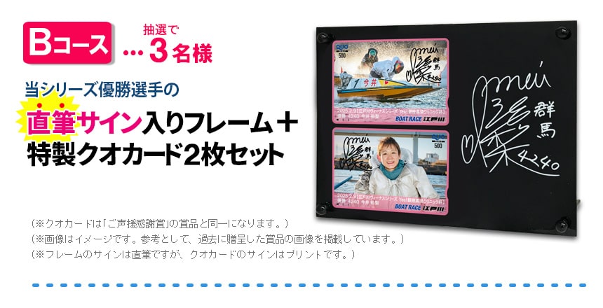 ※レースが6日間の開催日数を消化できずに中止または打ち切りとなった場合、中止または打ち切り前の「最終確定実施レース」までの舟券購入・クイズの回答を集計して正解者及び賞品贈呈の対象者の抽出を行います。
