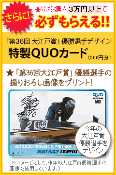 ★「第36回大江戸賞」の優勝戦&優勝選手の撮りおろし画像をプリントしたクイズ参加者限定の特製クオカードです♪