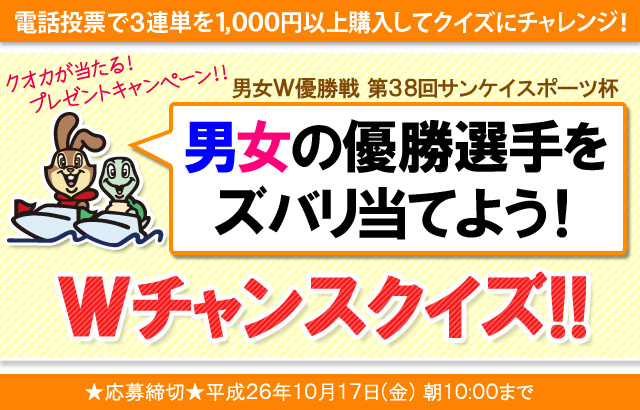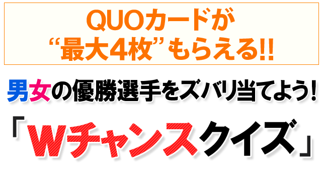 男女の優勝選手を当ててQUOカードをゲットしよう!「Wチャンスクイズ」