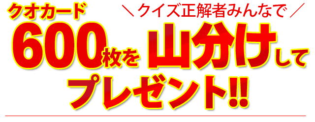 クイズ正解者の方には、合計600枚の★お一人様あたりの最大額は1万円分(クオカ500円分×20枚)とさせていただきます。