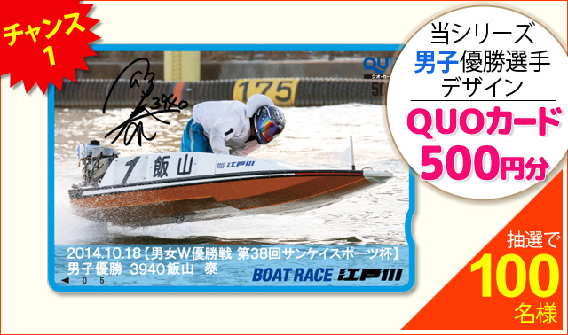 ▼チャンス1 「男子選手」正解賞 男子戦の優勝選手を的中された方の中から抽選で【男子】優勝選手デザインQUOカード(500円分×1枚)をプレゼントします。