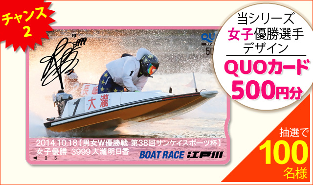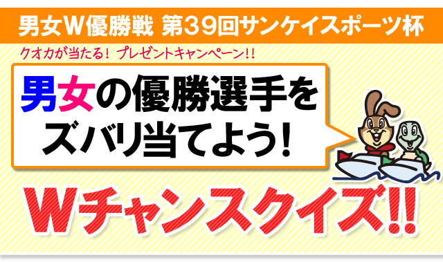 9月13日(日)より開催される『男女W優勝戦・第39回サンケイスポーツ杯』において、男女の優勝選手をズバリ当てる「Wチャンスクイズ」をメルマガ会員限定で実施します!
