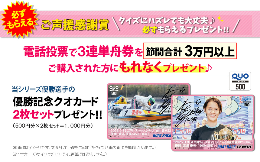 (3)対象期間中に電話・インターネット投票にて、ボートレース江戸川の3連単舟券を節間合計で1,000円以上ご購入